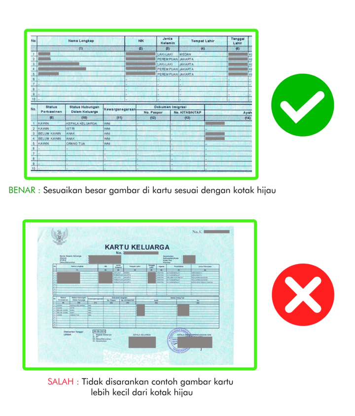Perhatian : Mohon perhatikan tata letak dan fokus gambar agar dapat dibaca informasi dalam kartu oleh bagian pendaftaran